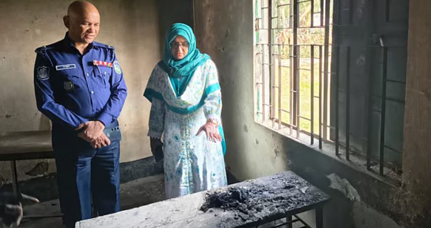 সহকারী রিটার্নিং কর্মকর্তা কার্যালয় ও স্থানীয় সূত্র জানায়, দুর্বৃত্তরা কয়েকটি বিদ্যালয়ের পুরোনো জানালা খুলে চটের বস্তায় কেরোসিন ঢেলে আগুন ধরিয়ে দেয়। এতে কিছু বেঞ্চ ও দেয়ালের আংশিক ক্ষতি হয়। অন্য দুটি বিদ্যালয়ের বারান্দায় রাখা পরিত্যক্ত বেঞ্চেও একইভাবে আগুন দেওয়া হয়।