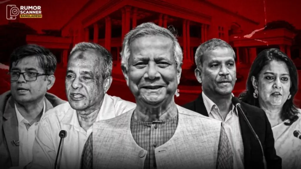 ২০২৪ সালের ৮ আগস্ট প্রধান উপদেষ্টা হিসেবে শপথ নেওয়ার পর থেকেই সরকারকে ঘিরে বিভিন্ন ধরনের গুজব ছড়াতে শুরু করে। শপথের পরদিনই সামাজিক যোগাযোগমাধ্যমে দাবি করা হয়, অন্তর্বর্তী সরকার ছয় বছর ক্ষমতায় থাকবে। তবে যাচাই করে দেখা যায়, এমন কোনো তথ্য মূলধারার গণমাধ্যমে প্রকাশ হয়নি।
