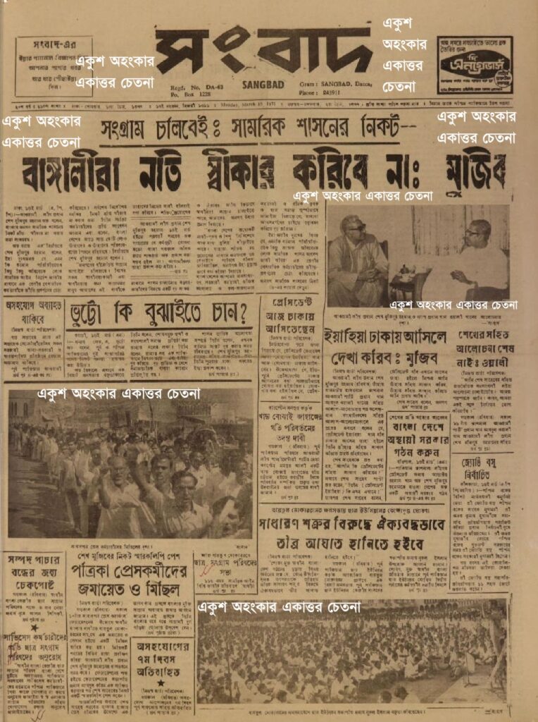 (পত্রিকাঃ ১৯৭১ সালের ১৫ই মার্চ প্রকাশিত দৈনিক সংবাদ পত্রিকার প্রথম পাতা)