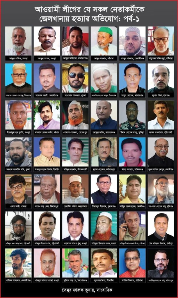 ছবিতে যে মানুষগুলোকে দেখছেন এরা সবাই এখন কবরে। এই মানুষগুলো আওয়ামী লীগের বিভিন্ন পর্যায়ের নেতাকর্মী ছিলেন। তাদেরকে এনজিও ব্যক্তিত্ব মুহাম্মদ ইউনূসের সরকারের সময়ে গ্রেপ্তার করে কারাবন্দি করা হয়। মানুষগুলোকে শারীরিক নির্যাতন, বিনাচিকিৎসায় হ-ত্যার অভিযোগ উঠেছে।