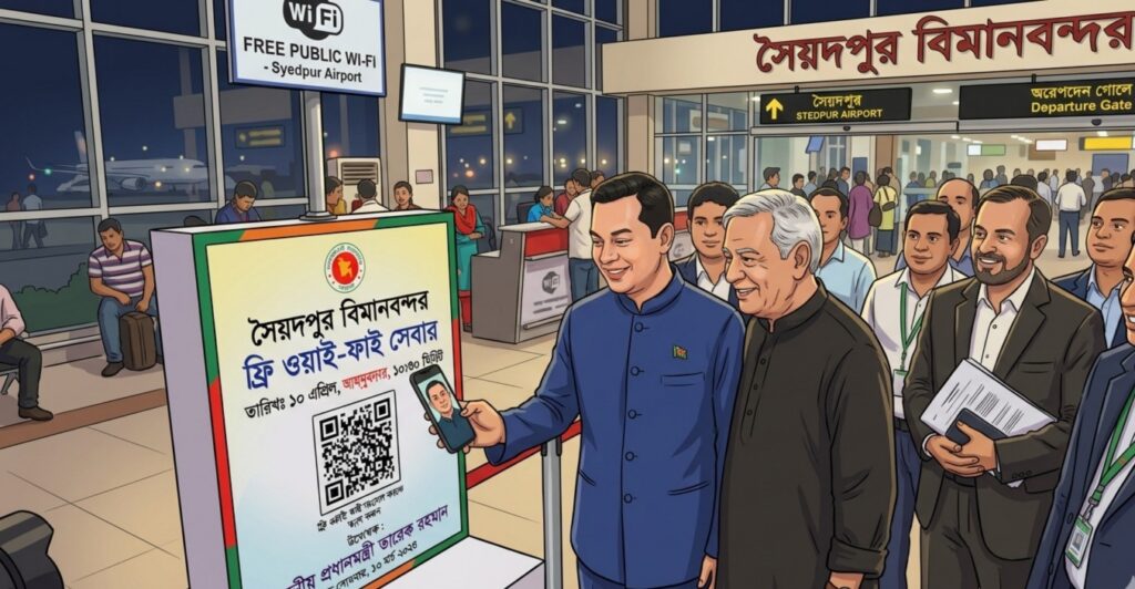 নীলফামারীর সৈয়দপুর বিমানবন্দরে যাত্রীসেবার মানোন্নয়নে ফ্রি ওয়াই-ফাই সেবার উদ্বোধন করেছেন প্রধানমন্ত্রী তারেক রহমান। সোমবার (১৬ মার্চ) দিনাজপুর সফর শেষে রাতে আকাশপথে ঢাকা ফেরার সময় তিনি এই ডিজিটাল সুবিধার আনুষ্ঠানিক যাত্রা শুরু করেন।