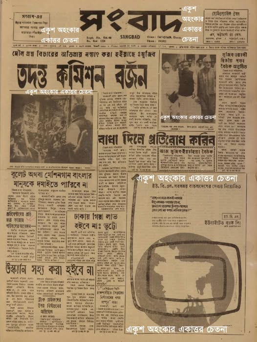 (পত্রিকাঃ ১৯৭১ সালের ১৯শে মার্চ প্রকাশিত দৈনিক সংবাদ পত্রিকার প্রথম পাতা)