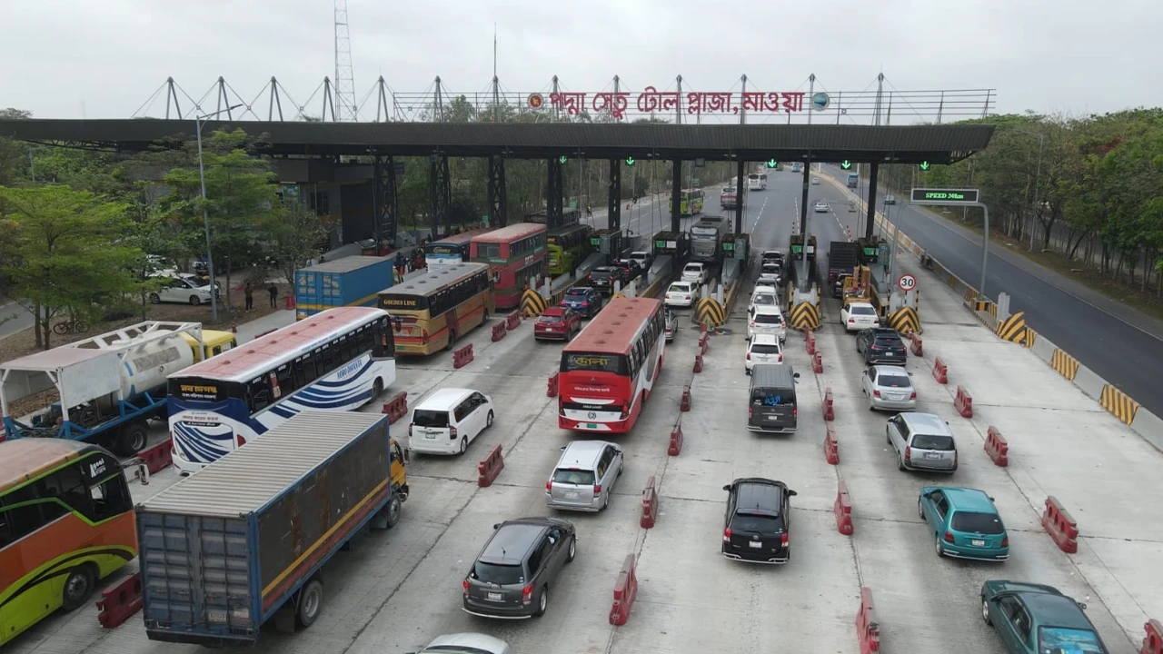 ঈদুল ফিতরের সরকারি ৭ দিনের ছুটিসহ মোট ১১ দিনের (১৮–২৮ মার্চ) হিসেবে দেখা যায়, পদ্মা সেতু দিয়ে ৩৪ লাখ ১ হাজার ৫০৪টি যানবাহন পারাপার হয়েছে। এই সময়ে মোট টোল আদায় হয়েছে ৩৬ কোটি ৬৮ লাখ ২৬ হাজার ৪৫০ টাকা। এর মধ্যে ১৮ মার্চ ছিল যানবাহনের সর্বোচ্চ চাপ; এদিন ৪১ হাজার ৮৮৫টি যানবাহন পারাপার করে এবং এক দিনেই ৪ কোটি ৫৪ লাখ ৫ হাজার ২৫০ টাকা টোল আদায় হয়। গত বছরের তুলনায় এবার যানবাহন চলাচল এবং টোল আদায় উভয় ক্ষেত্রেই উল্লেখযোগ্য প্রবৃদ্ধি লক্ষ্য করা গেছে।