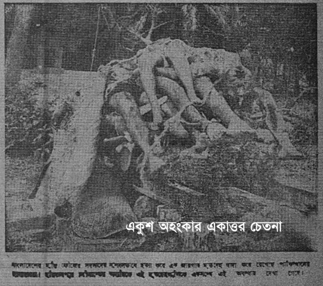 ছবিঃ ২ এপ্রিল ১৯৭১ তারিখে কলকাতা হতে প্রকাশিত যুগান্তর পত্রিকায় পাকিস্তানী হানাদারদের গণহত্যার প্রকাশিত একটি ছবি।
