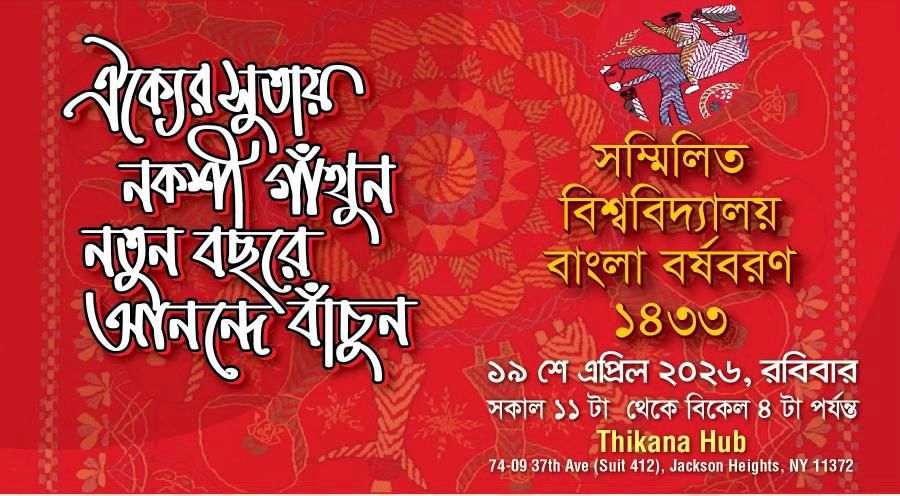 প্রবাসের মাটিতে বাঙালির হাজার বছরের ঐতিহ্য ও সংস্কৃতিকে তুলে ধরতে নিউইয়র্কে আয়োজিত হতে যাচ্ছে ‘সম্মিলিত বিশ্ববিদ্যালয় বাংলা বর্ষবরণ ১৪৩৩’।