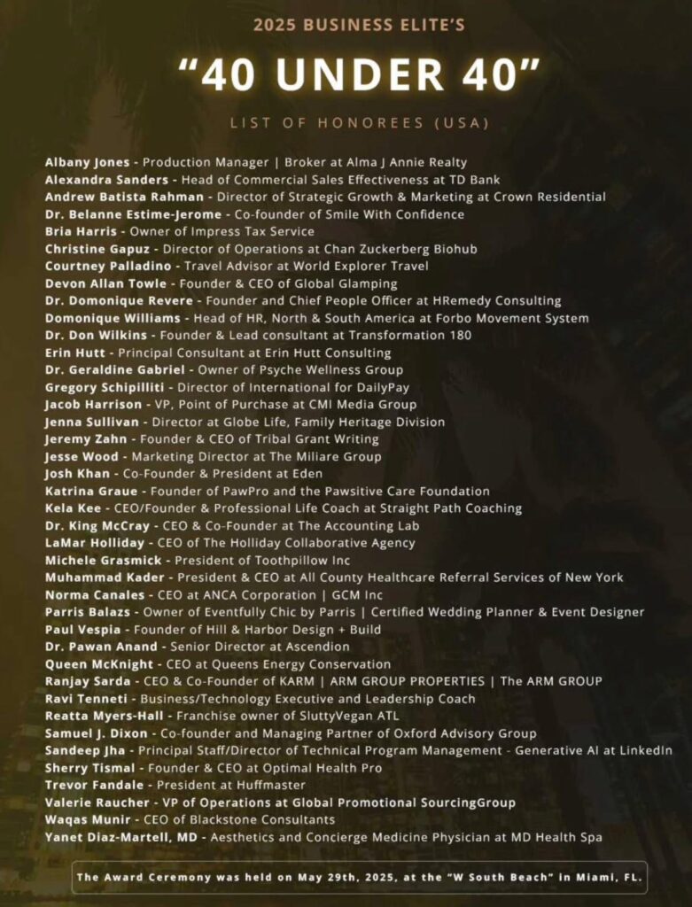 তার অর্জনের তালিকাও দীর্ঘ। বাংলাদেশ সরকারের Commercially Important Person (CIP) সম্মাননা (সর্বকনিষ্ঠ প্রাপ্তদের একজন)। ২০২৫ সালে তিনি যুক্তরাষ্ট্রে ‘Business Elite 40 Under 40’ সম্মাননা অর্জন করেন এবং সাবেক মার্কিন প্রেসিডেন্ট Joe Biden-এর কাছ থেকে ‘Presidential Lifetime Achievement Award’ অর্জন করেন। National Healthcare Champion Award (USA)। নিউইয়র্ক স্টেট অ্যাসেম্বলি প্রোক্লেমেশন ও কংগ্রেশনাল রিকগনিশন। এছাড়াও বিভিন্ন কংগ্রেস ও অঙ্গরাজ্য পর্যায়ের সম্মাননায়ও ভূষিত হন তিনি।