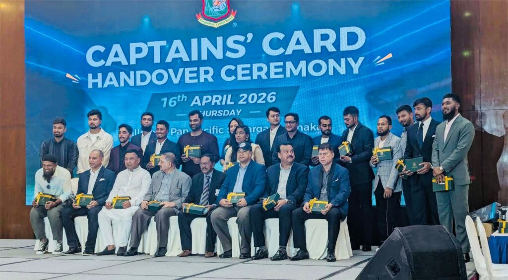 নিজস্ব প্রতিনিধি : বাংলাদেশ ক্রিকেট বোর্ড নতুন এক উদ্যোগের মাধ্যমে দেশের ক্রিকেট ইতিহাসে অবদান রাখা অধিনায়কদের সম্মানিত করেছে। রাজধানীর একটি পাঁচ তারকা হোটেলে আয়োজিত অনুষ্ঠানে পুরুষ ও নারী ক্রিকেট মিলিয়ে মোট ৩২ জন সাবেক ও বর্তমান অধিনায়কের হাতে তুলে দেওয়া হয় ‘ক্যাপ্টেনস কার্ড’।