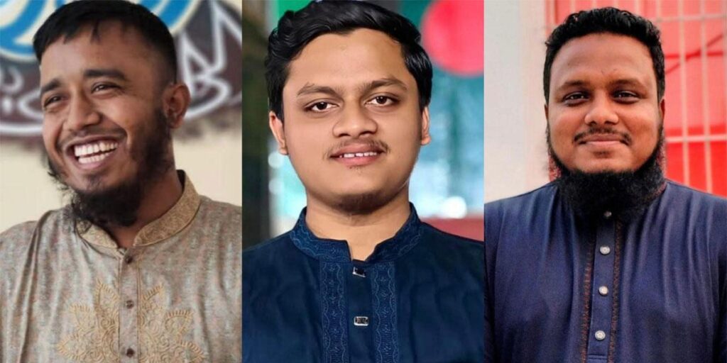 তারা হলেন–বিশ্ববিদ্যালয় শাখা ছাত্রশিবিরের সাংগঠনিক সম্পাদক ও আল কোরআন অ্যান্ড ইসলামিক স্টাডিজ বিভাগের ২০১৮-১৯ শিক্ষাবর্ষের শিক্ষার্থী মো. জাকারিয়া, সাবেক আন্তর্জাতিক সম্পাদক ও দাওয়াহ অ্যান্ড ইসলামিক স্টাডিজ বিভাগের ২০১৮-১৯ শিক্ষাবর্ষের শিক্ষার্থী হাসান আল বান্না এবং শাখা ছাত্রশিবিরের কলেজ সম্পাদক ও আল কোরআন অ্যান্ড ইসলামিক স্টাডিজ বিভাগের একই শিক্ষাবর্ষের শিক্ষার্থী আরিফুল ইসলাম।