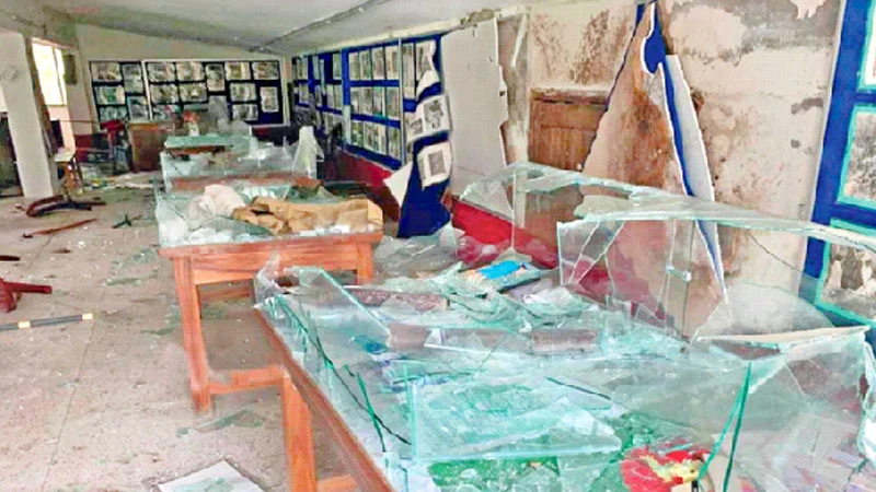 হামলার সময়, হামলাকারীরা কক্ষের সমস্ত কাচঘেরা টেবিল ভেঙে ফেলে এবং অনেক উপকরণ লুট করে নিয়ে যায়। বই ও দলিলপত্রও ছিঁড়ে ফেলা হয়। জাদুঘরের ব্যবহৃত মাইকও ভেঙে ফেলা হয় এবং অবশিষ্ট উপকরণগুলো যা পাওয়া গেছে, তা কেউ না কেউ নিয়ে গেছে।